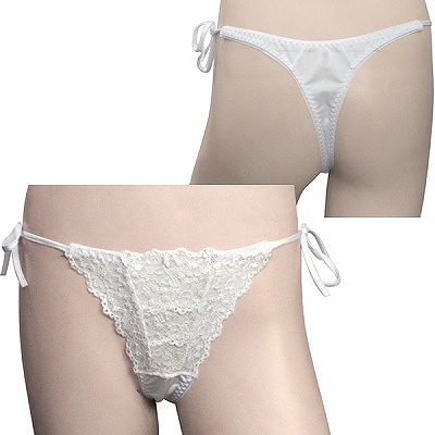 トリコット生地フラワーレース脇紐オープンTバック ホワイト ホワイト
