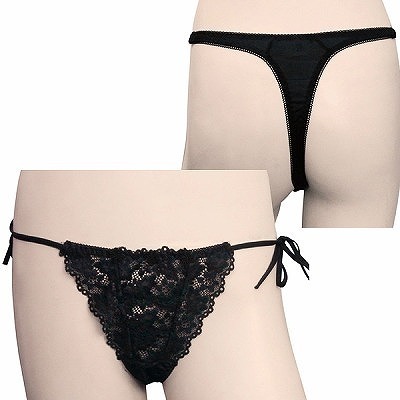 トリコット生地フラワーレース脇紐オープンTバック ブラック ブラック