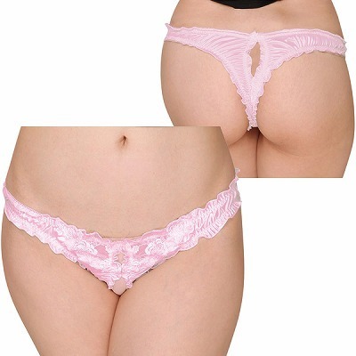 フェリカ&フラワーレース股割れオープンTバック ピンク ピンク