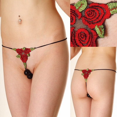 ダブルパールトリップ・Tバック ブラック