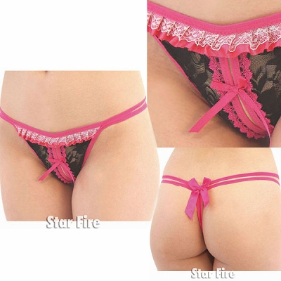 ダブルラインオープンレースTバック ブラック