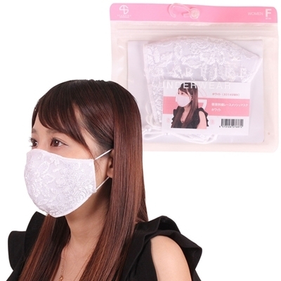 薔薇刺繍レースメッシュマスク ホワイト ホワイト