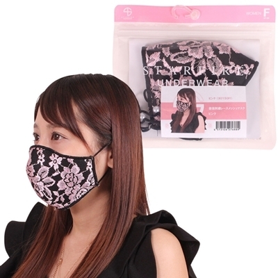 薔薇刺繍レースメッシュマスク ピンク ピンク