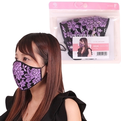 薔薇刺繍レースメッシュマスク パープル パープル