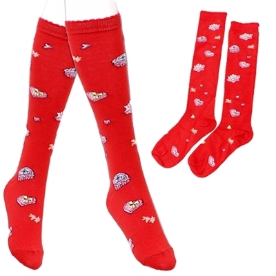 クッキー柄ロリータハイソックス単品 赤 レッド