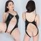 チェリーラブ メタリック生地大胆露出の股われレオタード ブラック ブラック