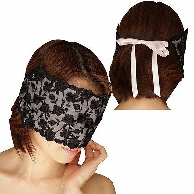 レース&薄コットンアイマスク 黒桃 黒桃
