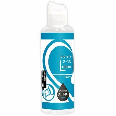 ふき取るだけで処理できる!無味・無臭のローション「マジックアイズローション 180ml(洗い不要)」。遠方にも携帯しやすいサイズで、さらに透明ボトルだから残量もすぐに確認できちゃう♪ディスクキャップを採用しているから、蓋も片手で簡単に開けられて使用する際に手間取ることもありません。安全性の高い成分「ヒドロキシエチルセルロース(粘度を高める成分)」を配合していて、主にヘアケア商品やマスカラなどの化粧品に配合されている成分だから、安全性にも優れた安心の商品となっております♪伸びは軽く、糸引きは軽めではありますが、使用後に洗う面倒もないので手軽にローションを使いたい方にはオススメの商品です!