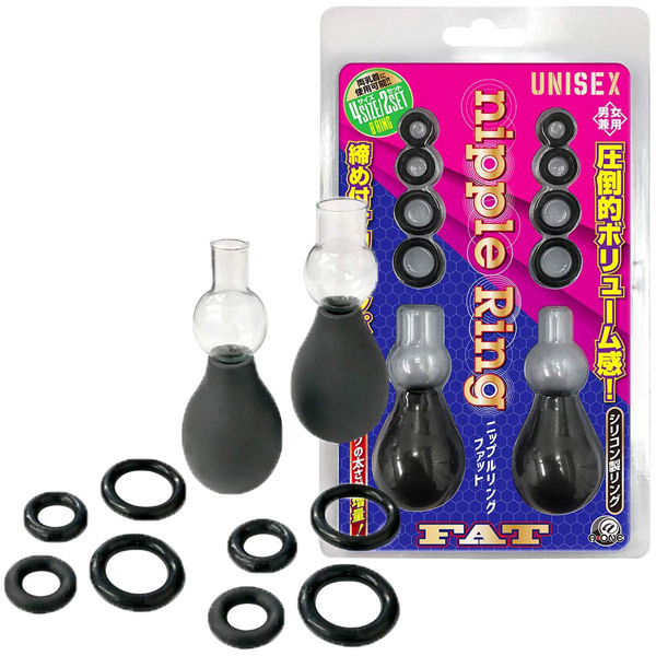 乳首やクリを吸引、リングで締め付けるポンプ付きニップルリング ファット(4サイズ2セット)。